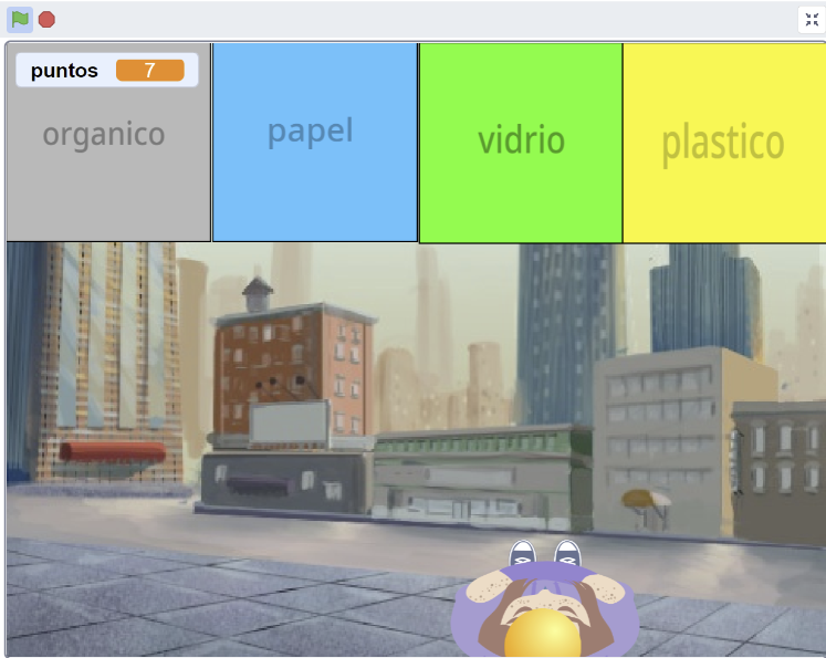 Hoy vamos a usar Scratch para aprender a reciclar. La chica tendrá distintos objetos en sus manos. Mueve a la chica usando las flechas derecha e izquierda y cuándo esté delante del contenedor correcto da a la tecla espacio para tirar la basura. Si aciertas aumentará el contador, pero si fallas volverás a tener el mismo objeto en la mano hasta que encuentres el contenedor correcto. Cuándo recicles todos los objetos aparecerá una pestaña final felicitándote. Enlace al juego
